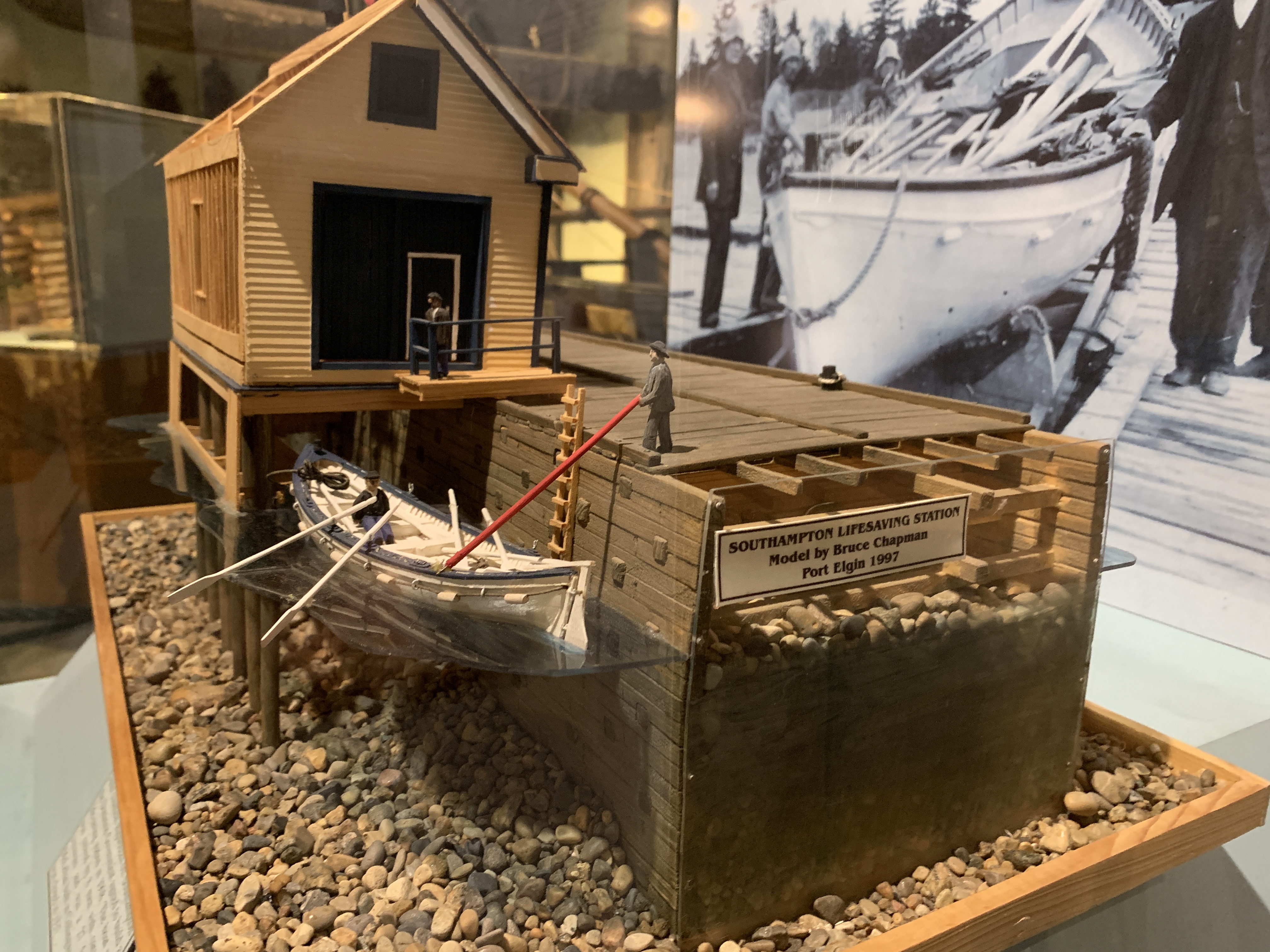 An incredible amount of research, planning, and scratch building was done by the Bruce County Museum Railway. Moreover, the display itself is an impressive piece of design and model railroad engineering. The computer-controlled train passes through several “window boxes” containing a diorama of each town along the route of the Canadian National Railroad’s ‘Southampton Subdivision’. The train uses two helixes on its journey to Southampton and once it reaches the end, a reverse loop is used to journey back again.