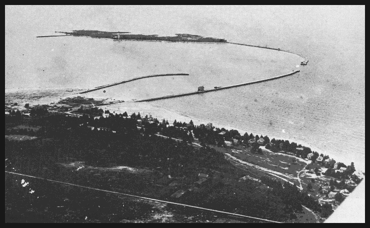 As I said, my parents used to take us to that cottage every summer. And being the train-crazy kid that I was, I noticed some strange things around town. There was a restaurant that looked strangely like a train station. There were railway wheel stops at an overgrown railway line a few blocks from the beach and there was this weird pile of rocks and timber on the beach that was extending out into the water. My mother confirmed that the restaurant was the train station and that she remembered taking the train to the town as a young girl. And that pile of rocks? That was a railway dock way back in the day!